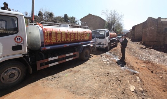 記者了解到,作為倡導“愛家、安家”理念的中國家居業第一品牌,紅星美凱龍在云南旱情最危急時刻,紅星美凱龍迎難而上,第一時間與云南省政府、曲靖市政府就旱災幫扶行動進行了協商和溝通。在詳細、全面了解了災區實際情況后,紅星美凱龍隨即研究、制定出了一套切實可行的以送水為核心內容的幫扶方案。最終敲定了位于曲靖重旱區西北部的會澤縣的50個特旱村,對其實施“為親人送水”的幫扶行動。此次行動已經啟動的一期方案是每天為五十個村的人畜運送干凈的飲用水,實施一個月,根據災情、旱情、水情再執行二期方案。