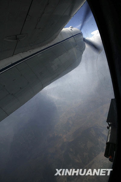 當(dāng)日,成都軍區(qū)空軍駐黔人工增雨小分隊(duì)抓住有利天氣實(shí)施人工增雨。13時(shí)37分,接到指令后,一架加裝人工增雨設(shè)備的運(yùn)-7運(yùn)輸機(jī),呼嘯著加速升空,飛赴增雨作業(yè)區(qū)域。機(jī)長、一級飛行員周正告訴記者,此前部隊(duì)已在貴州連續(xù)實(shí)施了多次人工增雨,今天的增雨作業(yè)將在畢節(jié)、遵義等幾個(gè)地區(qū)上空實(shí)施。14時(shí),飛行接近云區(qū),呈S形穿梭在云海之間,領(lǐng)航員介紹說:“S形飛行播撒效果最好,播撒藥劑面積大、范圍廣。”14時(shí)6分,在一片層積云上空,人工增雨專業(yè)人員按下點(diǎn)火器,碘化銀焰彈冒著紅色的火焰,生成催化劑灑向茫茫云海。在飛機(jī)上負(fù)責(zé)增雨的專業(yè)人員說,增雨作業(yè)后,24小時(shí)內(nèi)將形成降雨。這次增雨空中云量條件不錯(cuò),飛機(jī)也最大限度進(jìn)入了云層縱深,播撒時(shí)機(jī)也比較好,相信會(huì)有一個(gè)不錯(cuò)的增雨效果。截至18時(shí)26分,飛機(jī)在安順、畢節(jié)、遵義等地上空實(shí)施兩個(gè)架次人工增雨。21時(shí),從貴州省人工影響天氣領(lǐng)導(dǎo)小組辦公室傳來好消息,畢節(jié)地區(qū)普降小到中雨,降雨量為10毫米左右。新華社發(fā)(劉應(yīng)華 攝)