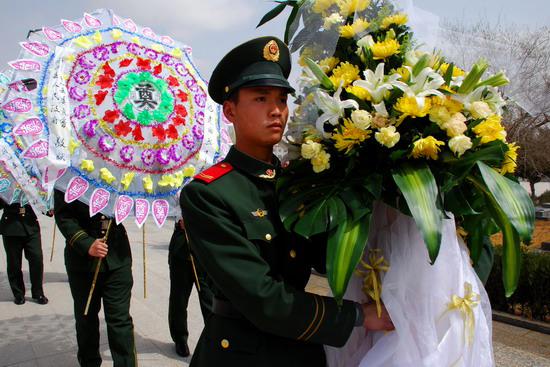 武警戰友向“抗旱英雄”敬獻花圈