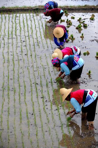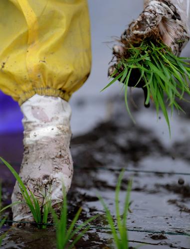 4月28日,大理市喜洲鎮的村民正在插秧。新華社記者 秦晴 攝