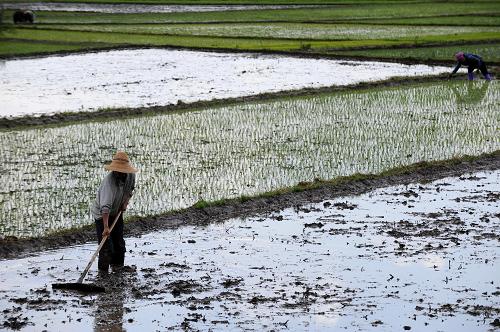 4月28日,大理市喜洲鎮的村民正在耕地插秧。新華社記者 秦晴 攝