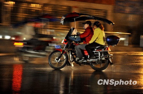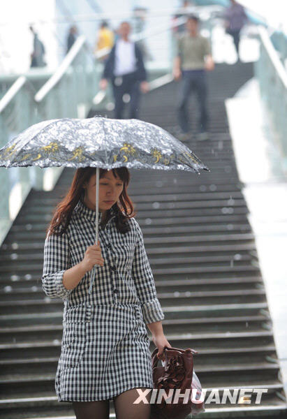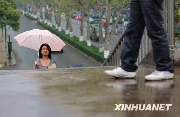 3月20日17時30分左右,貴陽市城區開始出現降雨,降雨持續時間約為1小時,行人紛紛撐傘避雨。新華社記者 李勁峰攝
