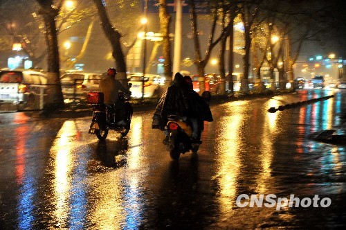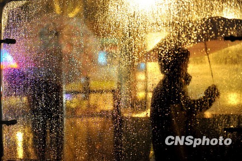 圖為行人和車輛在雨中行走。中新社發 吳東俊 攝