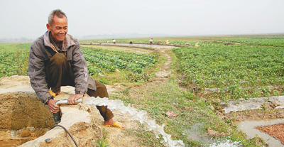 廣西百色市右江區龍景街道大同村細凍底屯村民梁仲高正在利用水井抽水灌溉,確保春播春種。人民網記者 龐革平 謝建偉攝影報道