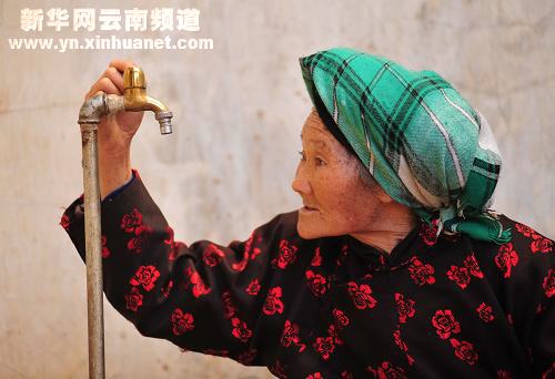 4月9日,曲靖市沾益縣西平鎮青山崖村老人陳世花凝視著家中已經斷流4個多月的水龍頭。