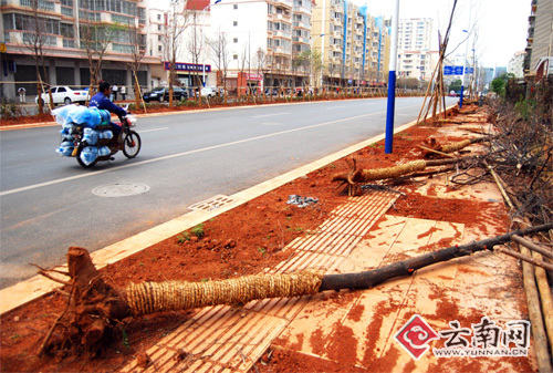 昆明紅錦路百余棵行道樹旱死 綠化處將更換新樹加強管理
