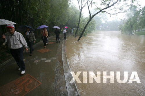 4月19日,在桂林漓江旁的象鼻山景區,部分景點被上漲的漓江水淹沒。