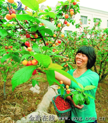 經過抗旱救災,貴陽市烏當區阿栗村300畝優質櫻桃喜獲豐收,產量可達13.5萬公斤,僅此為農民增收216萬元。正在采摘櫻桃的新寨村民組村民楊云種了4畝,可收入2.8萬元。