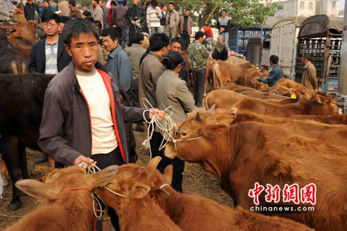 秦大章夫婦看上了馮元達一頭不到兩歲的小牛,“沒換牙齒、蹄也不錯。”秦大章很內行的告訴記者。在此后近30分鐘的時間里,一場在2300元至1900元人民幣之間的價錢拉鋸戰進行起來。最終,在周邊人的撮合下,秦大章以2010元的價錢買到了他看上的小牛。