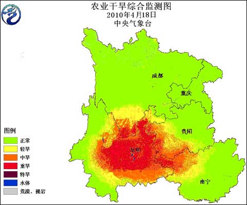 不過,18日的氣象干旱監(jiān)測(cè)結(jié)果顯示,云南中北部和東部、貴州西部和南部、廣西西北部、四川南部仍存在中度以上氣象干旱。與17日監(jiān)測(cè)結(jié)果比較,氣象干旱范圍變化不大。