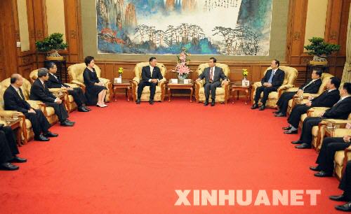 6月12日,中臺辦、國臺辦主任王毅在北京釣魚臺國賓館會見海基會董事長江丙坤率領的海基會代表團。 新華社記者 李曉果 攝