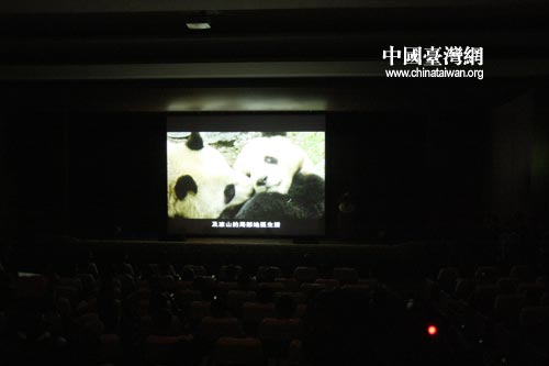 互贈儀式現場播放大陸方面贈送的珙桐樹、大熊貓和臺灣方面贈送的長鬃山羊、梅花鹿資料錄像。(本網特派記者田云鵬 發自臺北)