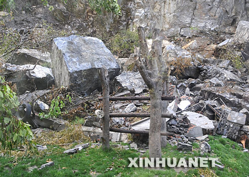 這是地震中損壞的大熊貓“團團”“圓圓”的圈舍(5月23日攝)。新華社記者陳燮攝