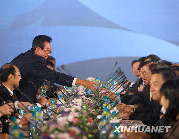 這是陳云林為江丙坤倒水。新華社記者 邢廣利 攝 |