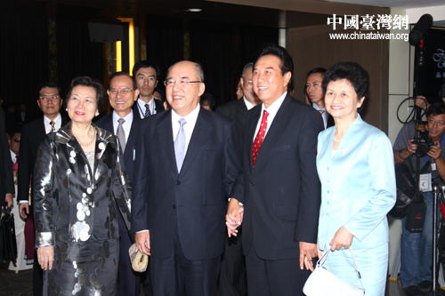 中國國民黨主席吳伯雄5日晚在臺北市晶華酒店設(shè)宴歡迎海協(xié)會協(xié)商代表團陳云林一行。島內(nèi)眾多政商名流出席了晚宴。