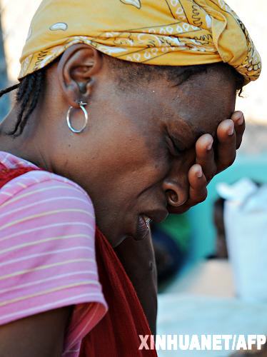 1月22日,在海地首都太子港,一位頭痛的婦女在一家以色列急診診所等待就醫。國際紅十字組織官員當日說,海地地震災區目前已開始出現腹瀉、破傷風、流腦、呼吸道疾病等病癥。在太子港災區,一些地方已開始進行清掃、消毒、接種等災后防疫工作。新華社/法新