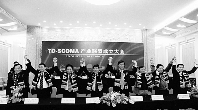 在發改委副主任張國寶、科技部副部長鄧楠、信產部副部長婁勤儉等領導的共同見證下,當8家廠商的老總佩戴聯盟圍巾,在主席臺上高舉雙手時,TD-SCDMA迎來了一個重大里程碑:我國第一個具有自主知識產權的國際標準TD-SCDMA終于獲得了產業界的集體響應。
