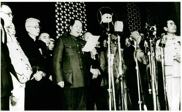 下午3時,首都30萬軍民齊聚天安門廣場,舉行開國大典。毛澤東宣讀了《中華人民共和國中央人民政府公告》,升起了莊嚴的國旗。朱德宣讀了中國人民解放軍總部命令,命令人民解放軍迅速肅清國民黨一切殘余武裝,解放一切尚未解放的國土,同時肅清土匪和其他一切反革命匪徒,鎮(zhèn)壓他們的一切反抗和搗亂行為。接著,舉行了閱兵式。中華人民共和國的成立,標志著帝國主義、封建主義和官僚資本主義對中國人民反動統(tǒng)治的徹底結(jié)束。中國人民從此成為中國社會的真正主人。中國從此由半殖民地半封建社會開始進入新民主主義社會,并向社會主義社會過渡。