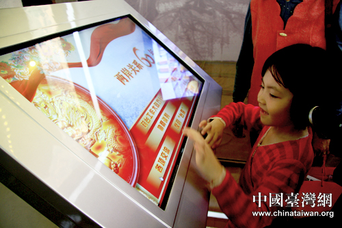 一位小姑娘在“兩岸關系發展展區”內饒有興致地點擊介紹“兩岸關系60年”的觸摸屏(中國臺灣網 李徽 攝)