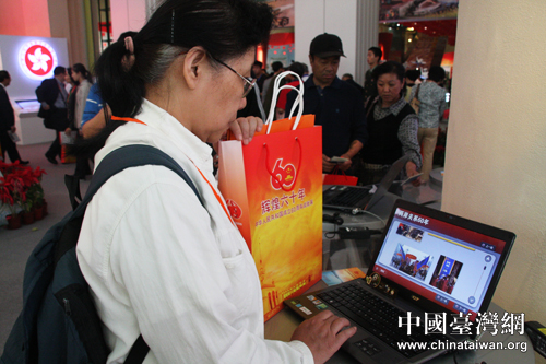 北京市民潘文建女士認為用電子技術展示兩岸關系60年發展變化新穎便捷(中國臺灣網 鐘寶華 攝)