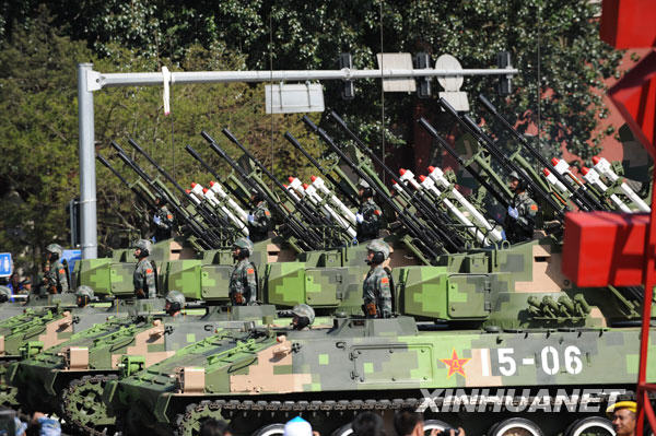 這是履帶自行高炮方隊準備通過天安門廣場。10月1日,首都各界慶祝中華人民共和國成立60周年大會在北京舉行。新華社記者李鋼攝