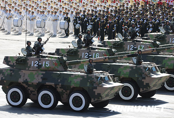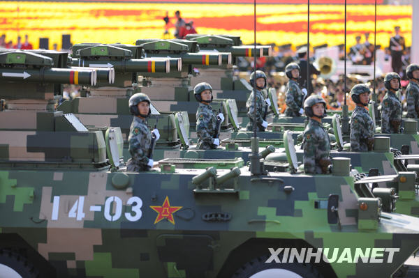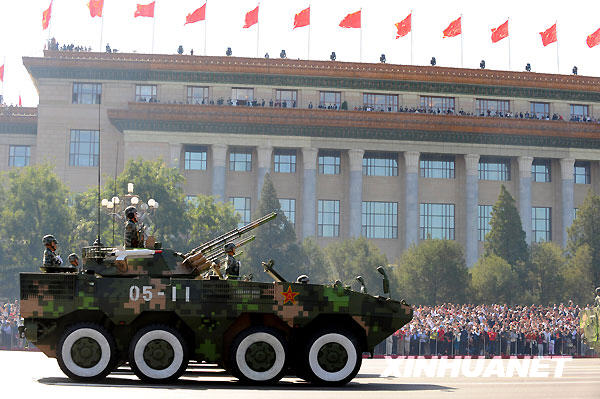 10月1日,首都各界慶祝中華人民共和國成立60周年大會在北京舉行。這是輪式步戰車方陣通過長安街。新華社記者徐昱 攝