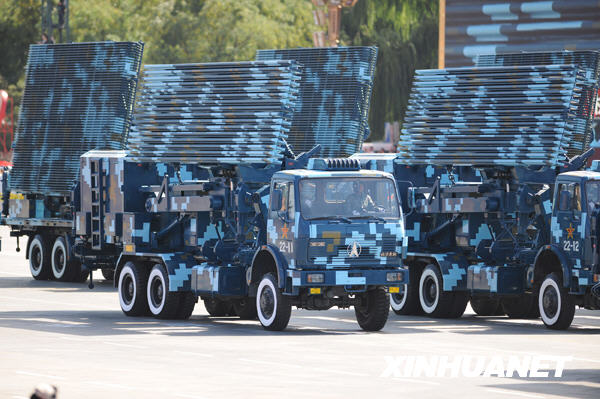 10月1日,首都各界慶祝中華人民共和國成立60周年大會在北京天安門廣場隆重舉行。這是國慶閱兵分列式中的機動雷達方隊正在通過天安門廣場。新華社記者陳曉偉攝