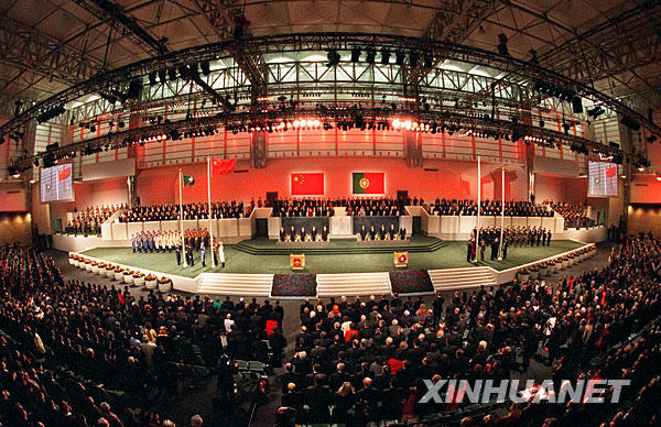 1999年12月19日午夜至20日凌晨,中葡兩國政府澳門政權交接儀式在澳門隆重舉行,中國對澳門恢復行使主權。新華社發