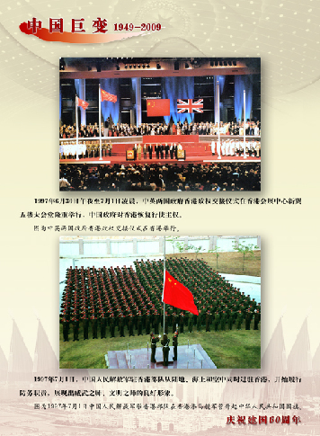 60載風雨歷程,60載壯麗詩篇。新中國成立以來,中國共產(chǎn)黨領導和團結海內(nèi)外中華兒女,以創(chuàng)造性的大戰(zhàn)略,推動祖國統(tǒng)一進程邁出歷史性的大步伐:香港、澳門順利回歸,中華民族洗刷百年屈辱,“一國兩制”偉大構想成功實踐;兩岸關系從隔絕、對峙走向交流、對話,排除各種艱難險阻,掀開和平發(fā)展的歷史新頁……