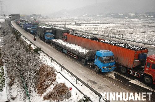 當日,正在全力開展破冰掃雪工作的京珠高速公路湖南段尚未貫通,而車輛與人員的堵塞現象重新加劇。據湖南省交通廳證實,截至1月30日記者發稿時,京珠高速湖南段仍滯留車輛約1.2萬臺,滯留人員3.7萬人左右。滯留的車輛與人員比上一日明顯增加。來自湖南省公安廳的消息表明,由于1月29日京珠高速湖北南下入口管制解除,京珠高速湖南段新進入車輛4000多臺,新增遇阻司乘人員約1.7萬人,一度緩和的堵塞現象重新加劇。目前,湖南省緊急呼吁車輛請勿貿然南下。 新華社記者 龍弘濤 攝