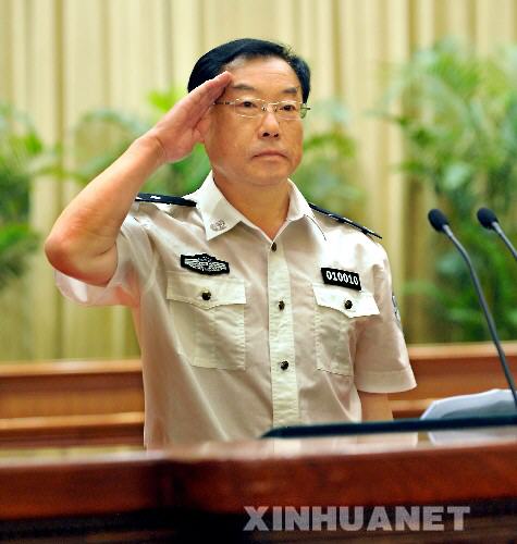 這是黑龍江省哈爾濱市巡(特)警支隊支隊長劉亞民在報告會上發言(6月11日攝)。當日,共青團十六大抗震救災英模事跡報告會在北京人民大會堂舉行。 新華社記者 陳曉偉 攝