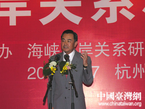 中國臺灣網7月8日杭州消息 今天晚上六點半,中共中央臺辦、國臺辦在浙江杭州市世貿君瀾飯店舉行晚宴,歡迎前來參加2008年度兩岸關系研討會的各界專家學者。中共中央臺灣工作辦公室、國務院臺灣事務辦公室主任王毅在晚宴上致歡迎辭。