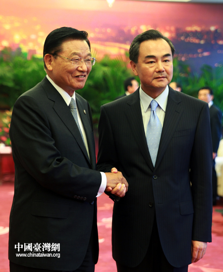 6月29日下午,中共中央臺(tái)辦、國(guó)務(wù)院臺(tái)辦主任王毅在重慶會(huì)見(jiàn)了海基會(huì)董事長(zhǎng)江丙坤一行,雙方并座談。(中國(guó)臺(tái)灣網(wǎng) 鐘寶華 攝)
