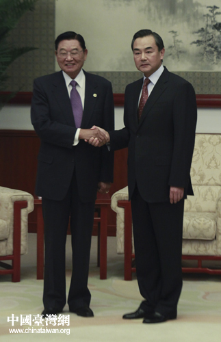 中共中央臺辦、國務院臺辦主任王毅在天津會見臺灣海基會董事長江丙坤一行。(中國臺灣網 陳佳慧 攝)