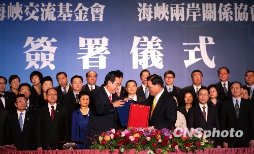 中新網12月22日電 據“中央社”報道,兩岸兩會領導人今天簽署3項新協議,為第四次會談劃下圓滿句點。尤其,海基會在簽署儀式后、致贈大陸海協會禮品帶有“安定和平”意義,寓意深長。