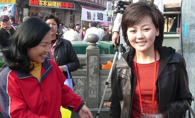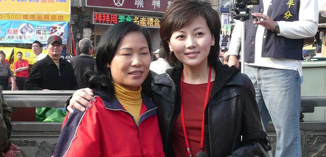 央視美女主播柴璐(右)在大甲鎮瀾宮遇見女粉絲,并被要求合影。