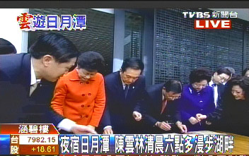 據臺灣TVBS報道,陳云林今天就要搭機離臺,今早特地起了大早,去瀏覽日月潭周邊美景。