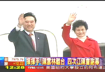陳云林結束兩會領導人第四次會談行程離臺返京。來源:臺灣TVBS電視臺
