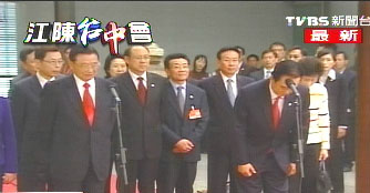 陳云林離臺(tái)前鞠躬致謝。 來源:臺(tái)灣TVBS電視臺(tái)