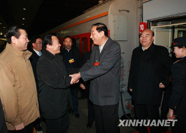 3月2日7時20分,出席十一屆全國人大二次會議的內蒙古代表團乘坐K90次列車抵達北京西站。新華社記者 龐興雷 攝
