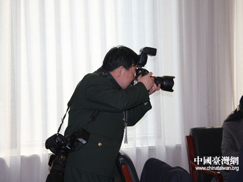 中國臺灣網3月10日北京消息 今天上午,全國政協會議臺聯界別組正在舉行熱烈的小組討論,一位身著戎裝的解放軍記者突然帶著兩臺相機出現在會場,并向臺聯組的兩位軍人委員熱情的打招呼。這時在場的其他委員和記者才恍然大悟,今天黃植誠和林賢順兩位委員之所以穿著筆挺的軍裝出席小組討論,是因為早就心知肚明要“出鏡”呢!(賀晨曦 文 賀晨曦/趙輝 圖)