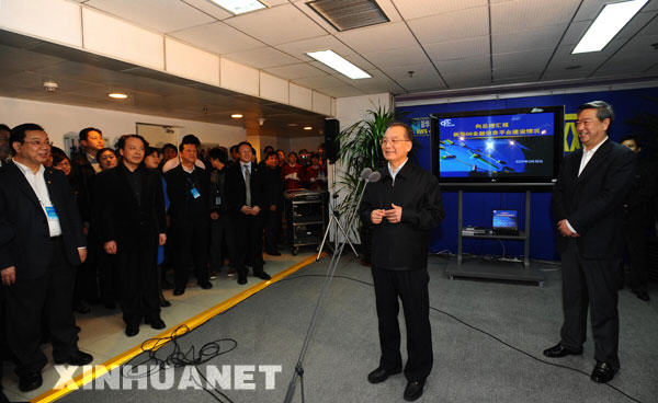這是訪談結束后,溫家寶看望中國政府網、新華網工作人員并發表講話。新華社記者 李濤 攝