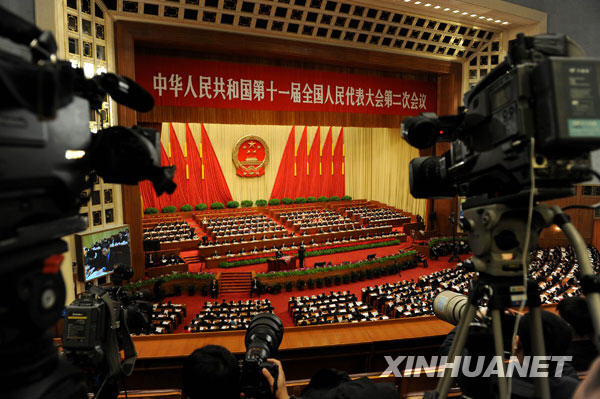 3月9日,十一屆全國人大二次會議在北京人民大會堂舉行第二次全體會議。新華社記者楊宗友攝