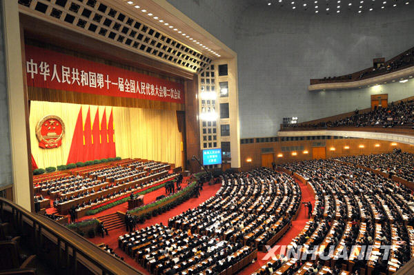 3月10日,十一屆全國人大二次會議在北京人民大會堂舉行第三次全體會議。新華社記者饒愛民攝