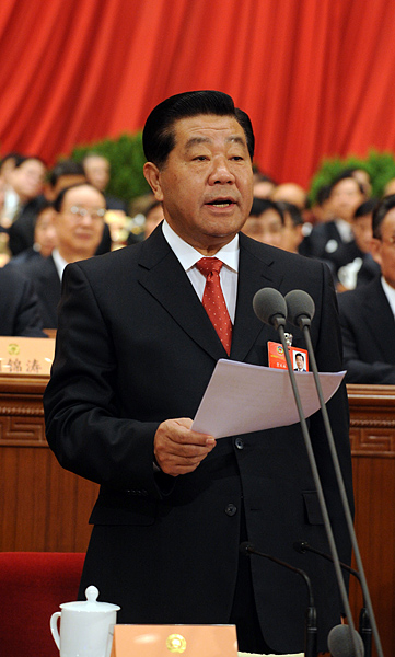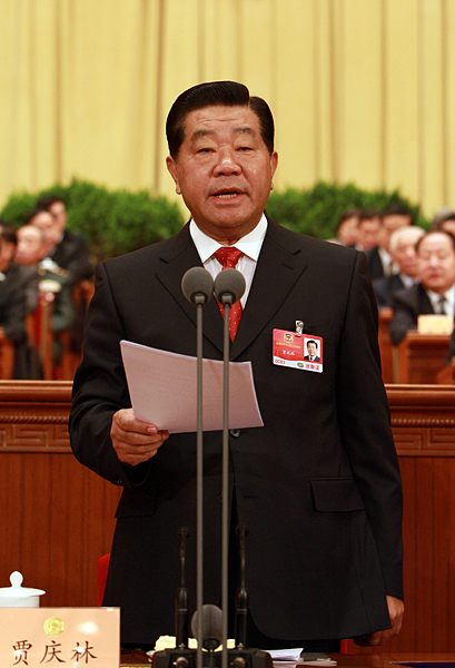 全國政協(xié)主席賈慶林主持閉幕會并講話。新華社記者李學(xué)仁攝