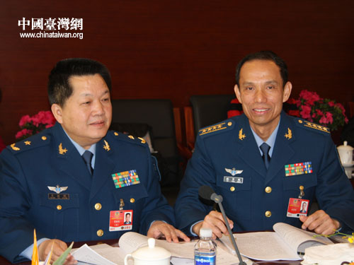 中國臺灣網(wǎng)3月10日北京消息 今天上午,全國政協(xié)會議臺聯(lián)界別組正在舉行熱烈的小組討論,一位身著戎裝的解放軍記者突然帶著兩臺相機(jī)出現(xiàn)在會場,并向臺聯(lián)組的兩位軍人委員熱情的打招呼。這時在場的其他委員和記者才恍然大悟,今天黃植誠和林賢順兩位委員之所以穿著筆挺的軍裝出席小組討論,是因?yàn)樵缇托闹敲饕俺鲧R”呢!(賀晨曦 文 賀晨曦/趙輝 圖)