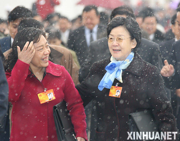 3月8日是國際勞動(dòng)?jì)D女節(jié),一場春雪降臨京城,女代表們冒雪前往北京人民大會(huì)堂,參加十一屆全國人大三次會(huì)議第二次全體會(huì)議,在工作中度過自己的節(jié)日。