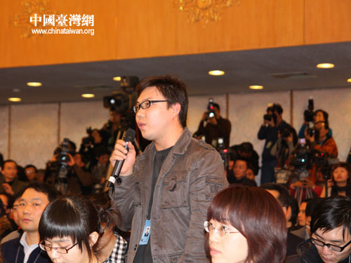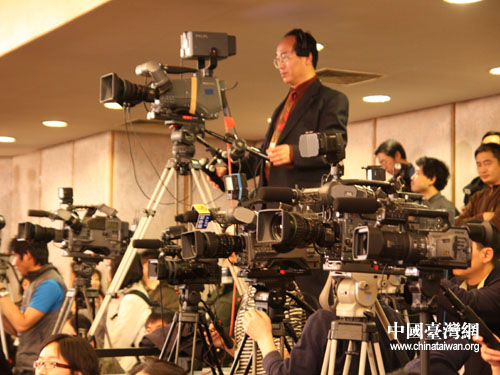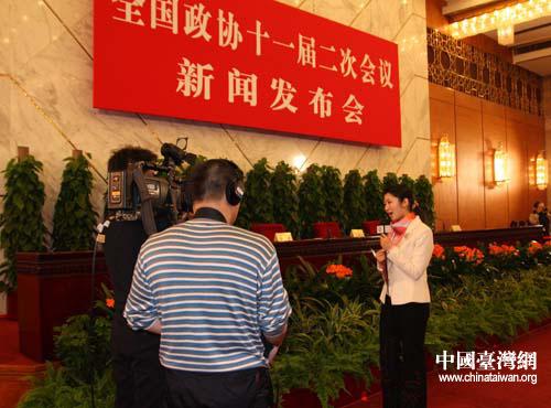 中國(guó)臺(tái)灣網(wǎng)3月2日北京消息 今天下午3點(diǎn),全國(guó)政協(xié)十一屆二次會(huì)議第一場(chǎng)新聞發(fā)布會(huì)在人民大會(huì)堂舉行,吸引了眾多中外記者前來(lái)采訪。許多記者在關(guān)注兩會(huì)的同時(shí),也成為了被關(guān)注的對(duì)象。以下就是本網(wǎng)記者在現(xiàn)場(chǎng)采集到的同行風(fēng)采。(趙靜/賀晨曦 圖文)