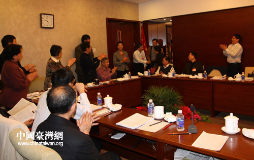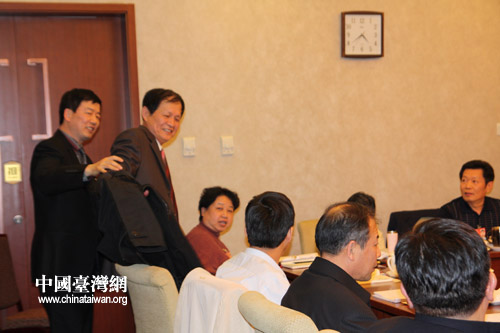 陳正統剛坐定不久,又一撥“不速之客”到訪,大家立即起立歡迎,原來是北京市臺聯的同志們前來拜訪。領隊的北京市臺聯會長蘇輝說:大家這么多年,為我們國家各方面的建設都做了很多貢獻,所以今天借這個機會表達感激之意。