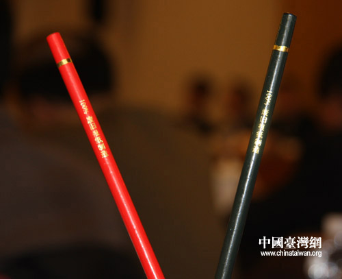 中國臺灣網(wǎng)3月7日北京消息 節(jié)儉是今年兩會會務(wù)的特點,在今天的臺盟臺聯(lián)聯(lián)組討論會場中,記者即發(fā)現(xiàn)了一個節(jié)儉辦會的小細節(jié)——委員們桌上放的每只鉛筆,筆桿上都標(biāo)著這樣一行小字:100%廢舊報紙制造。